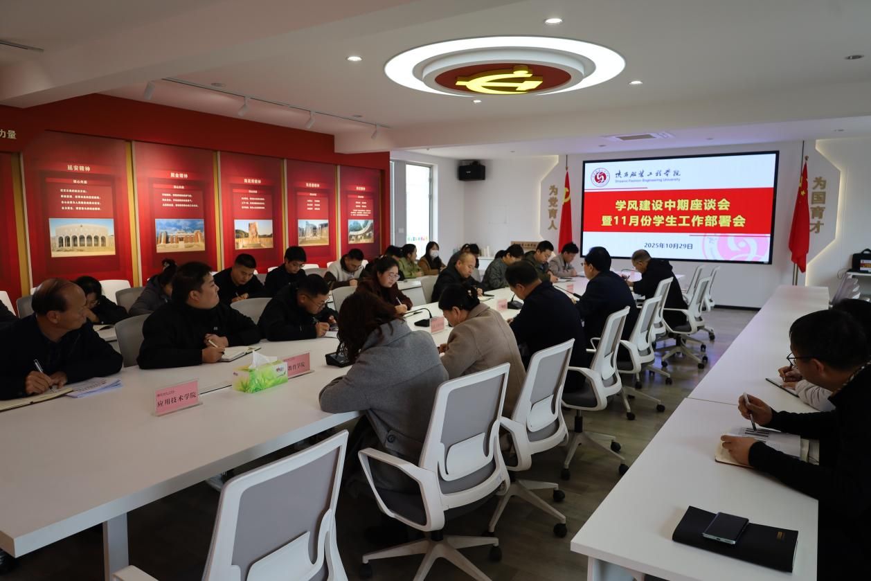 陕服新闻网讯(张维峰)为扎实推进“涵养学习志趣 赋能职业未来”学风建设主题月活动,总结阶段成效、梳理存在问题、部署下一阶段工作,10月29日上午,学校在行政中心326会议室召开学风建设中期座谈会暨11月份学生工作部署会。党委副书记刘继兵主持会议并讲话。