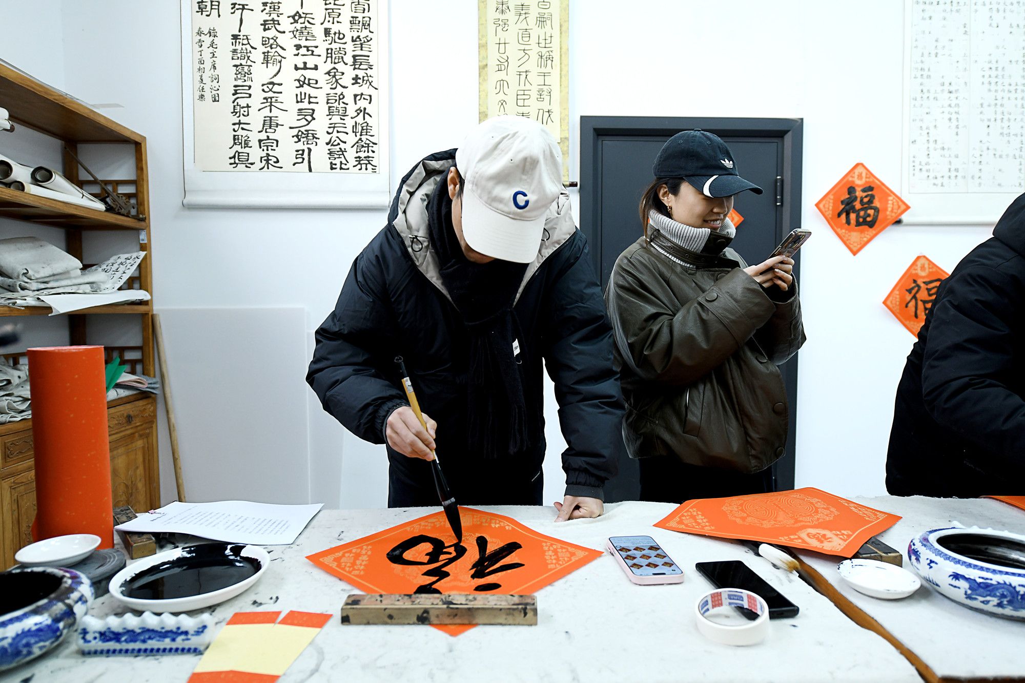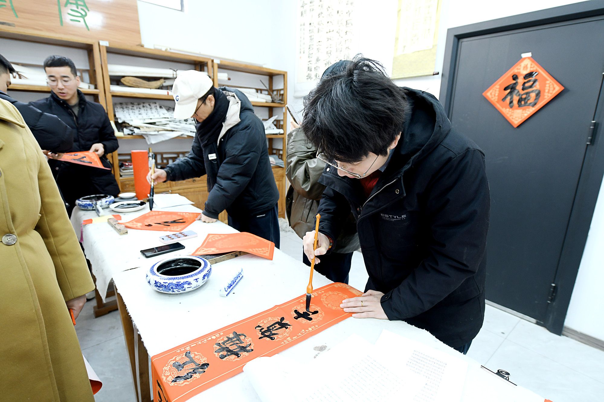陕服新闻网讯(李文斌)1月21日,校工会、艺术设计学院在校书法室举办“寻味中国年 非遗贺新春”2026丙午马年写春联活动。