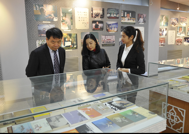 上海小荧星艺校总经理助理易爱博在校长助理吴俊林等陪同下参观季羡林国学院